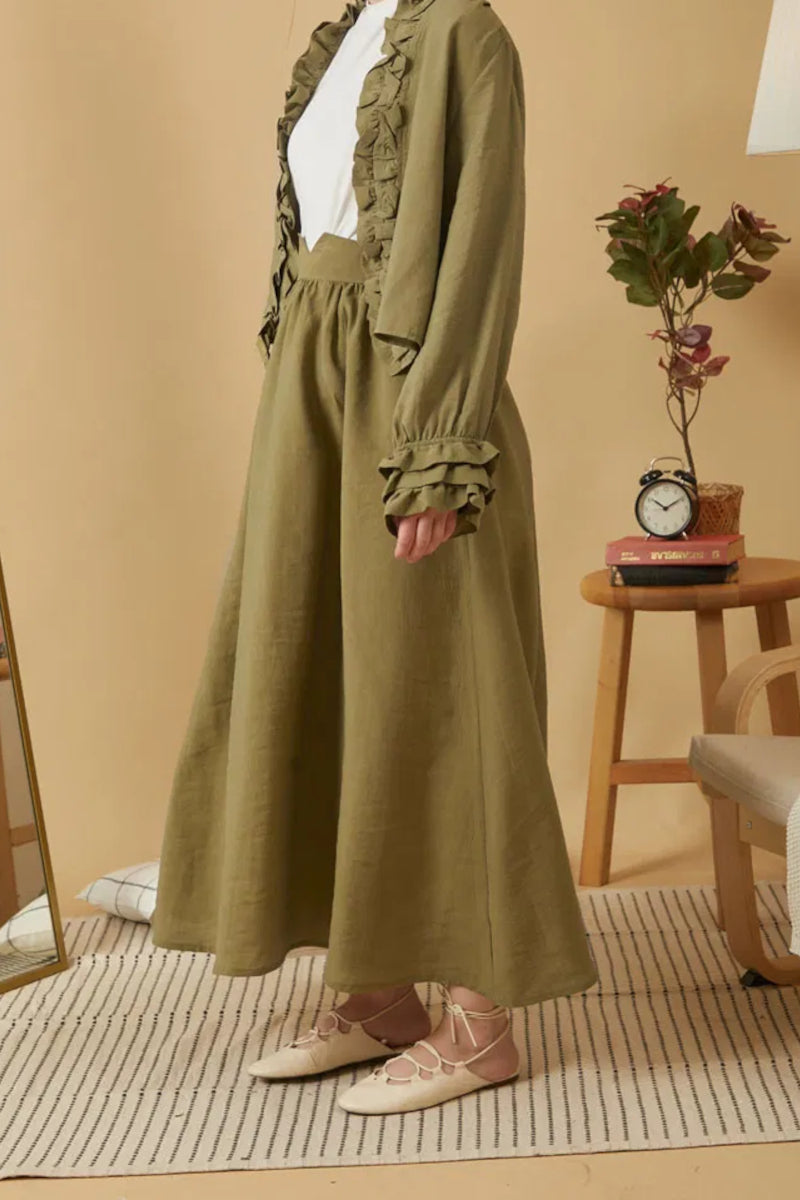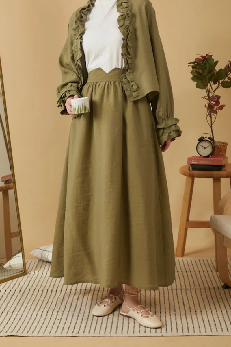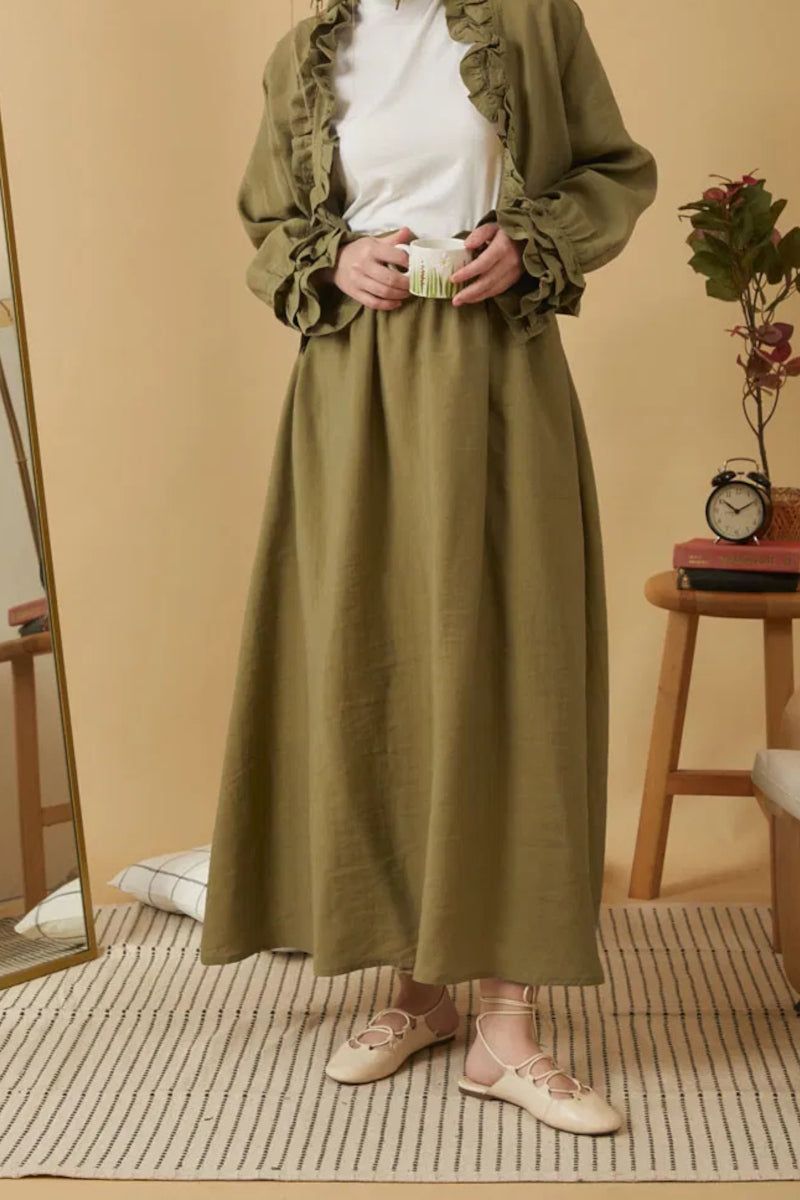 Confectionnée dans le modal, tissu d'une douceur et d'une fluidité exceptionnelles, cette jupe midi allie élégance et confort tout au long de la journée. Le délicat froncement à la taille apporte une touche féminine et dynamique, tandis que sa coupe fluide assure une grande liberté de mouvement.
